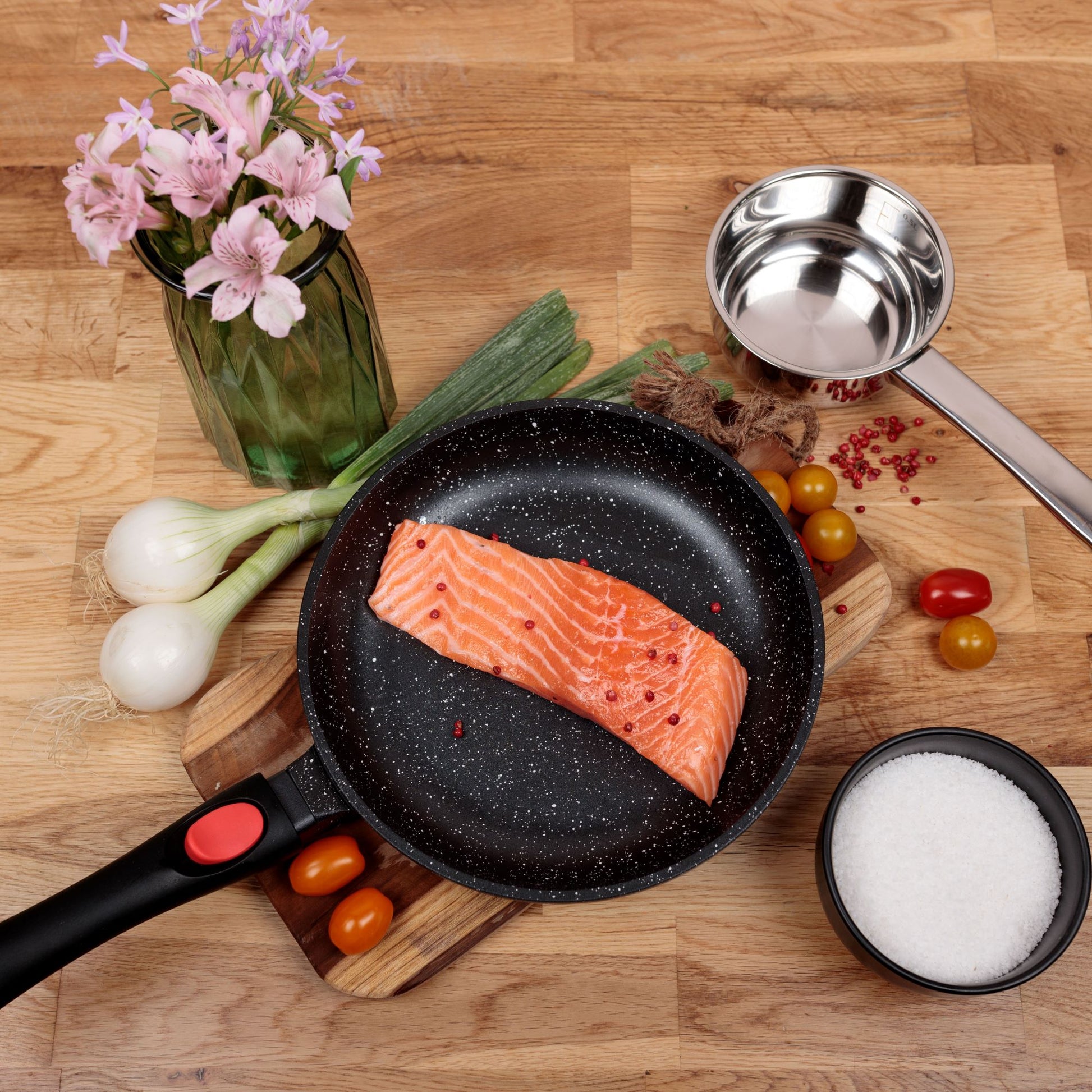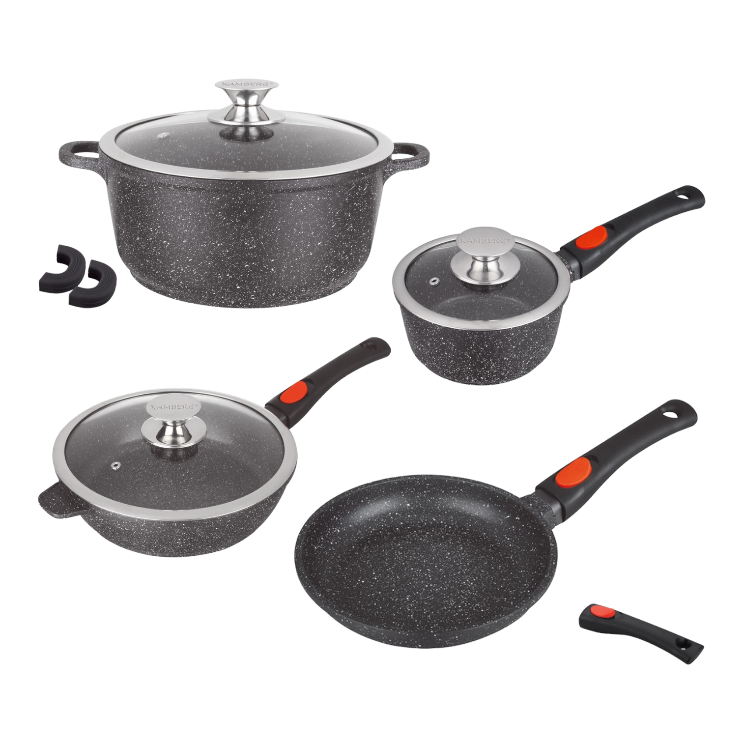 This 10-piece KAMBERG® battery is equipped with a high-performance stone-style non-stick coating which allows you to maintain the authenticity of the taste of food, without adding fat. Cast aluminum guarantees long-lasting resistance and non-deformability. The Kamberg collection is certified for all types of fire.