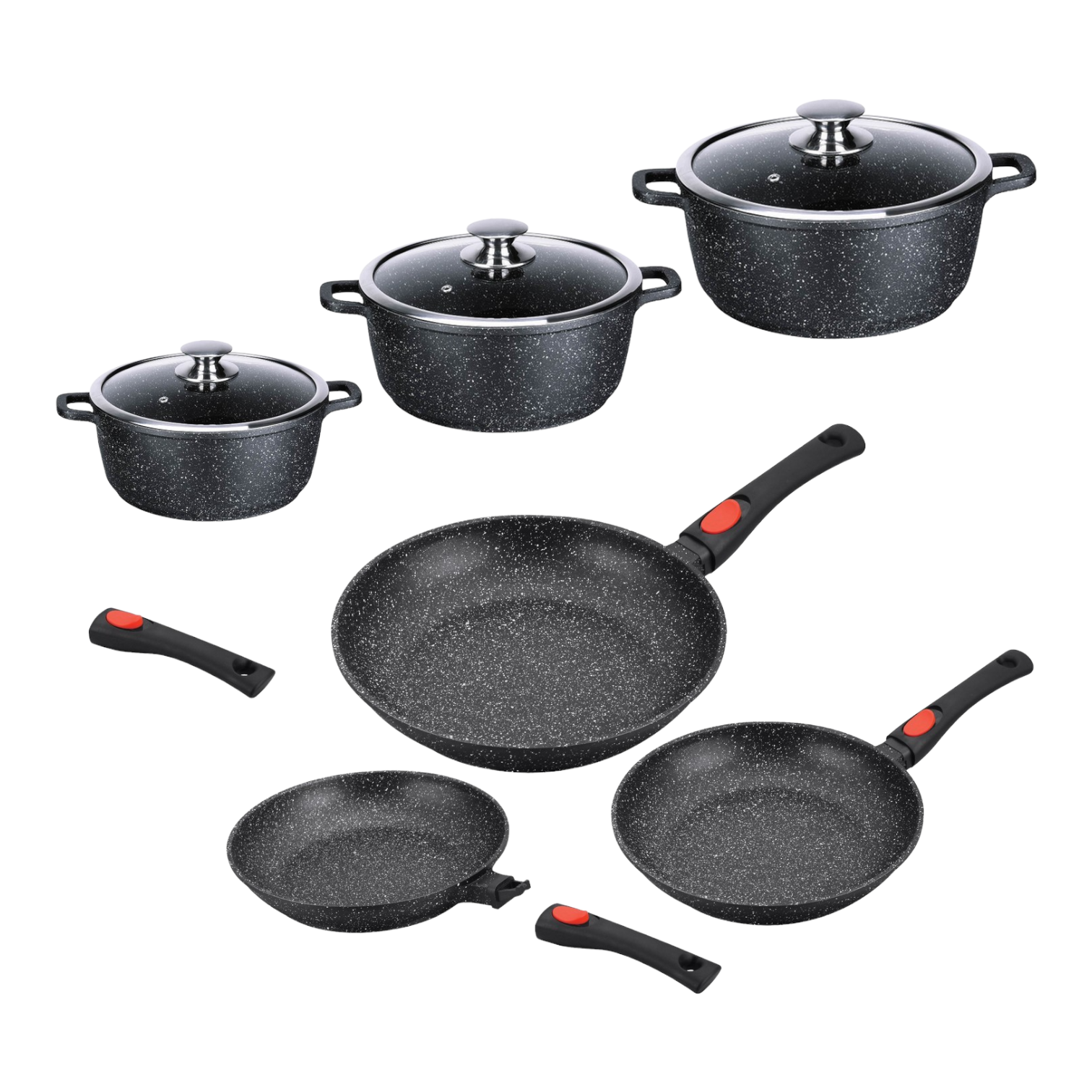 - Equipped with 3 removable handles and 3 pairs of silicone handles