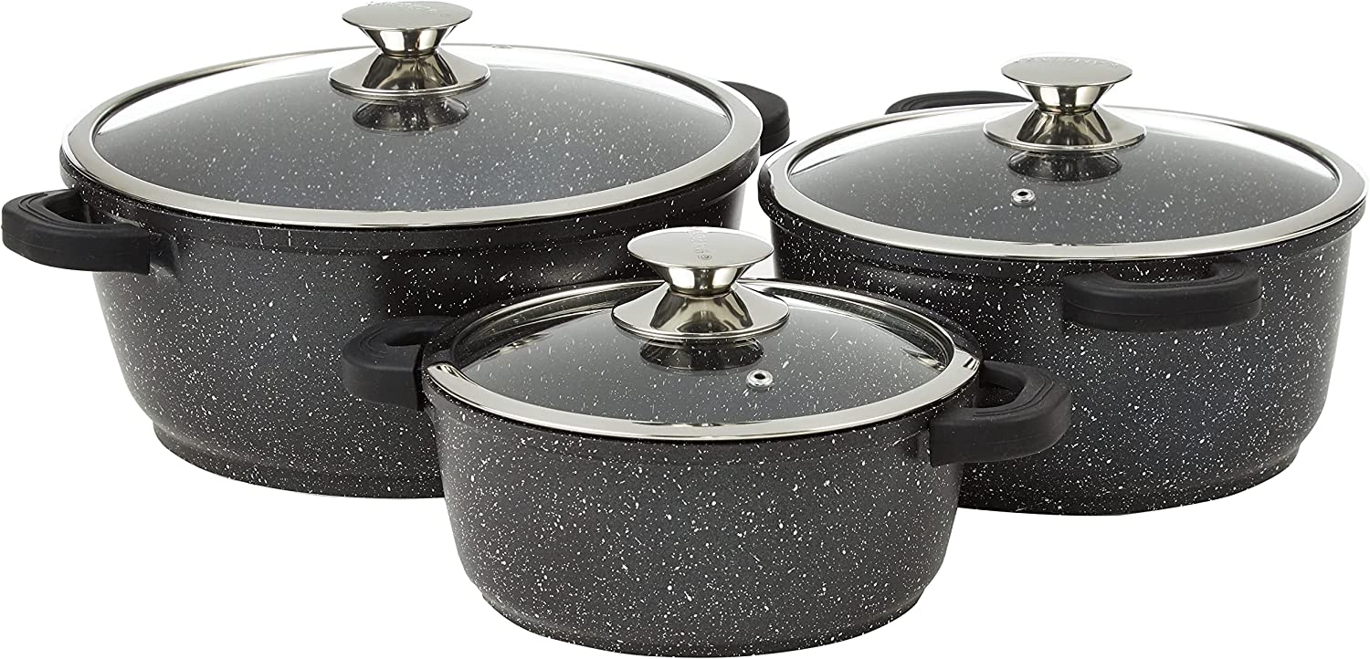 This 24-piece KAMBERG® battery (with lids that fit pots and pans) is equipped with a high-performance stone-style non-stick coating that allows you to maintain the authenticity of the taste of food, without adding fat. Cast aluminum guarantees long-lasting resistance and non-deformability. The Kamberg collection is certified for all types of fire.