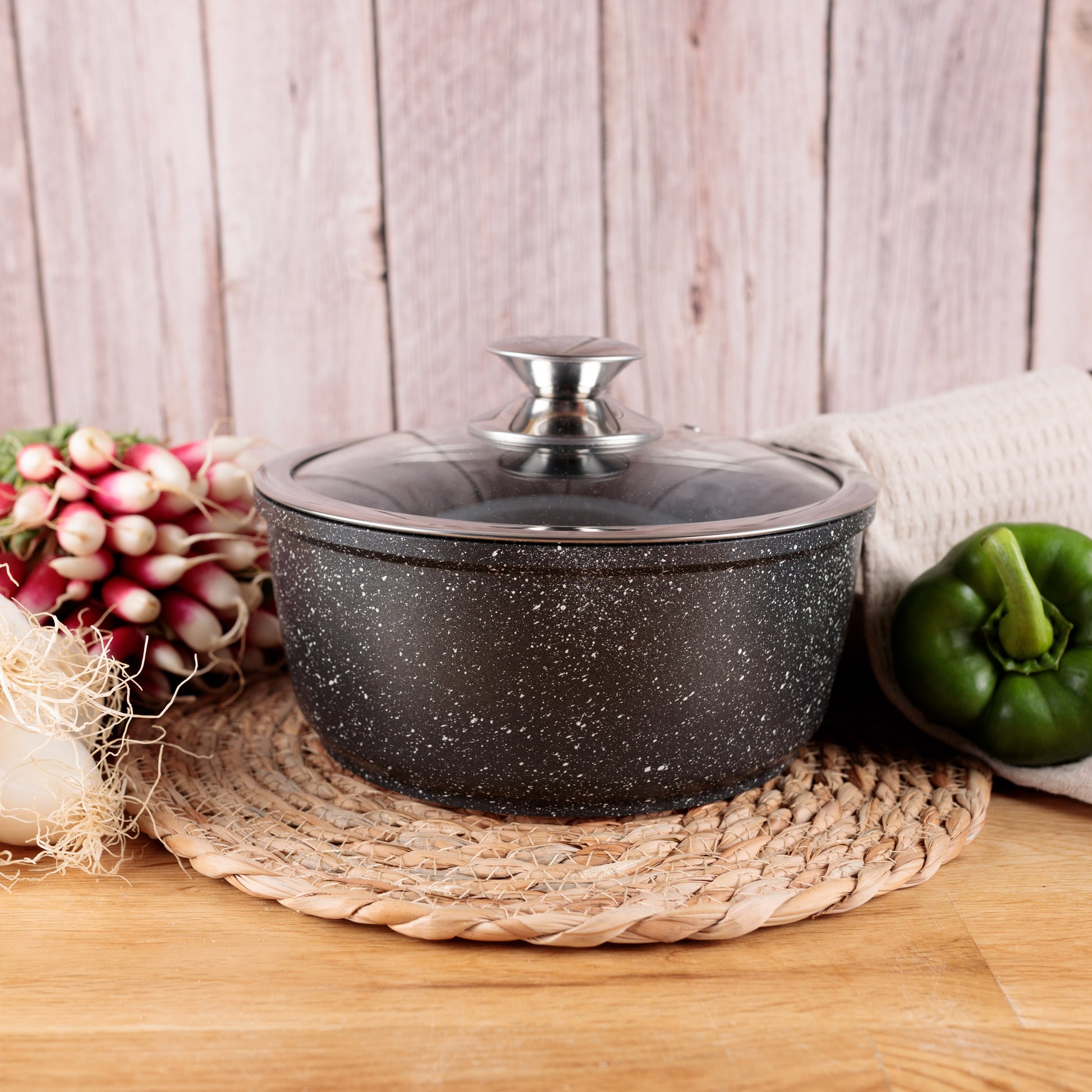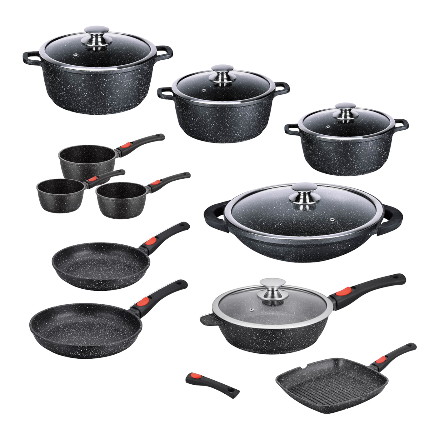 This 29-piece KAMBERG® battery is equipped with a high-performance stone-style non-stick coating which allows you to preserve the authenticity of the taste of food, without adding fat. Cast aluminum guarantees long-lasting resistance and non-deformability. The Kamberg collection is certified for all types of fire.