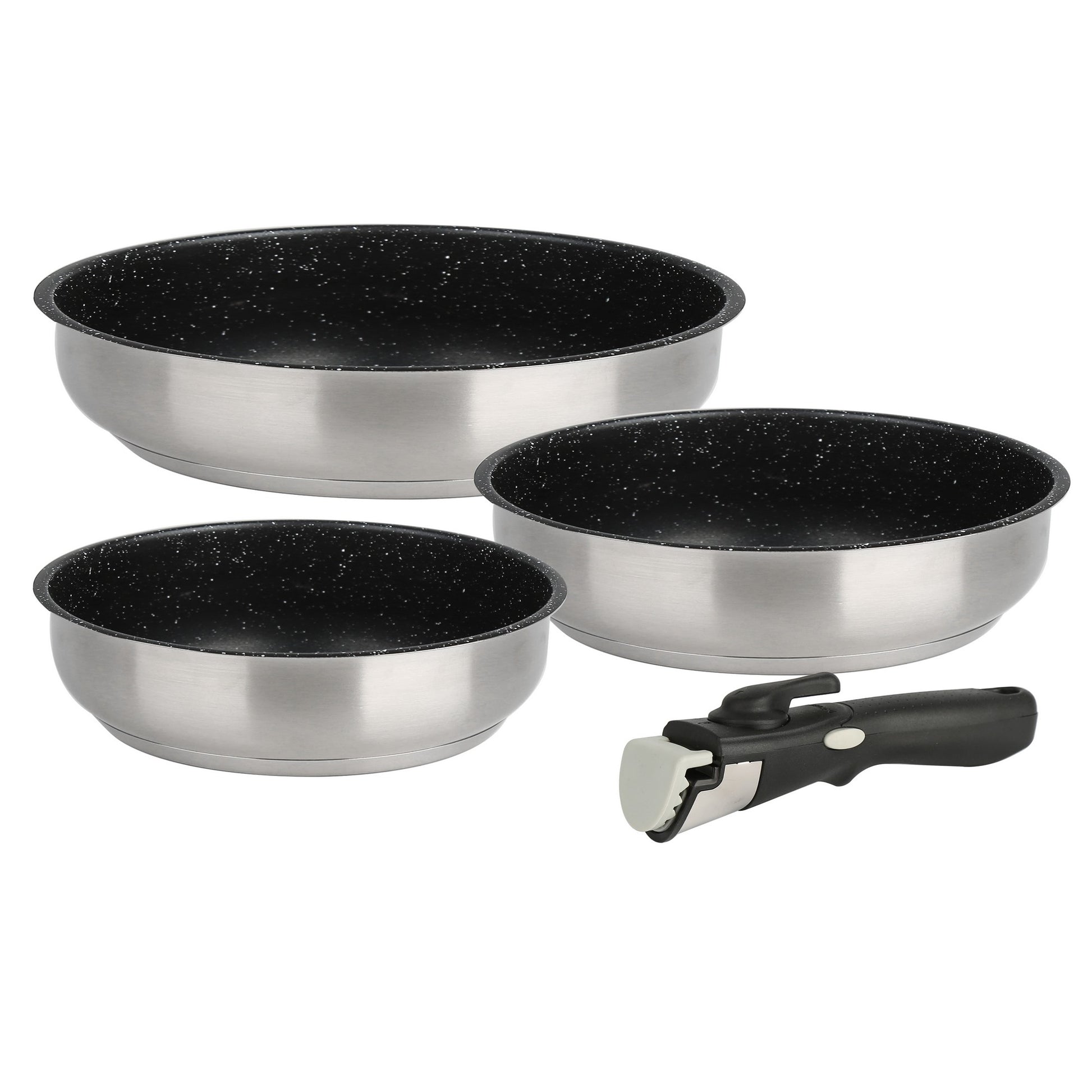 - 3 pans (20 x 5.5 cm - 24 x 5.5 cm - 28 x 5.5 cm)