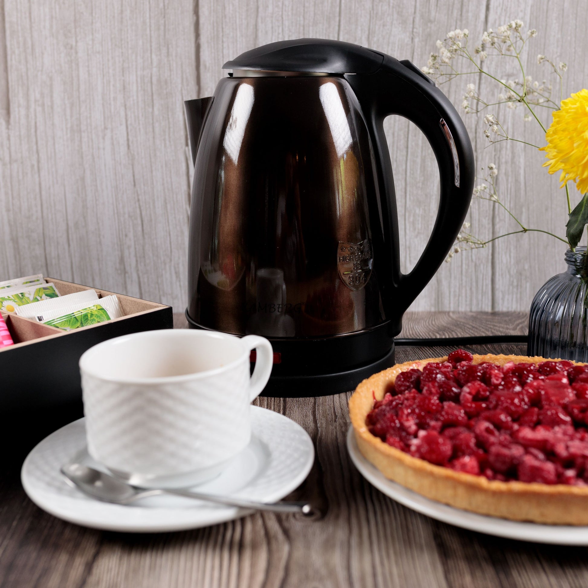 This KAMBERG® kettle with its sleek design and satin finish will fit perfectly into your kitchen decor. Its ergonomic handle will give you a comfortable grip to pour your water safely.