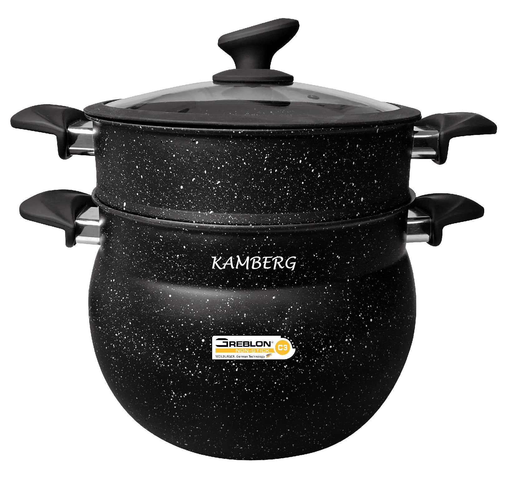 This KAMBERG® couscous maker in High Quality stainless steel 3 in 1 (couscous maker, pot and steamer) has a PFOA-free interior and exterior stone-type coating and offers optimal heat diffusion for healthy and rapid cooking of your favorite dishes.