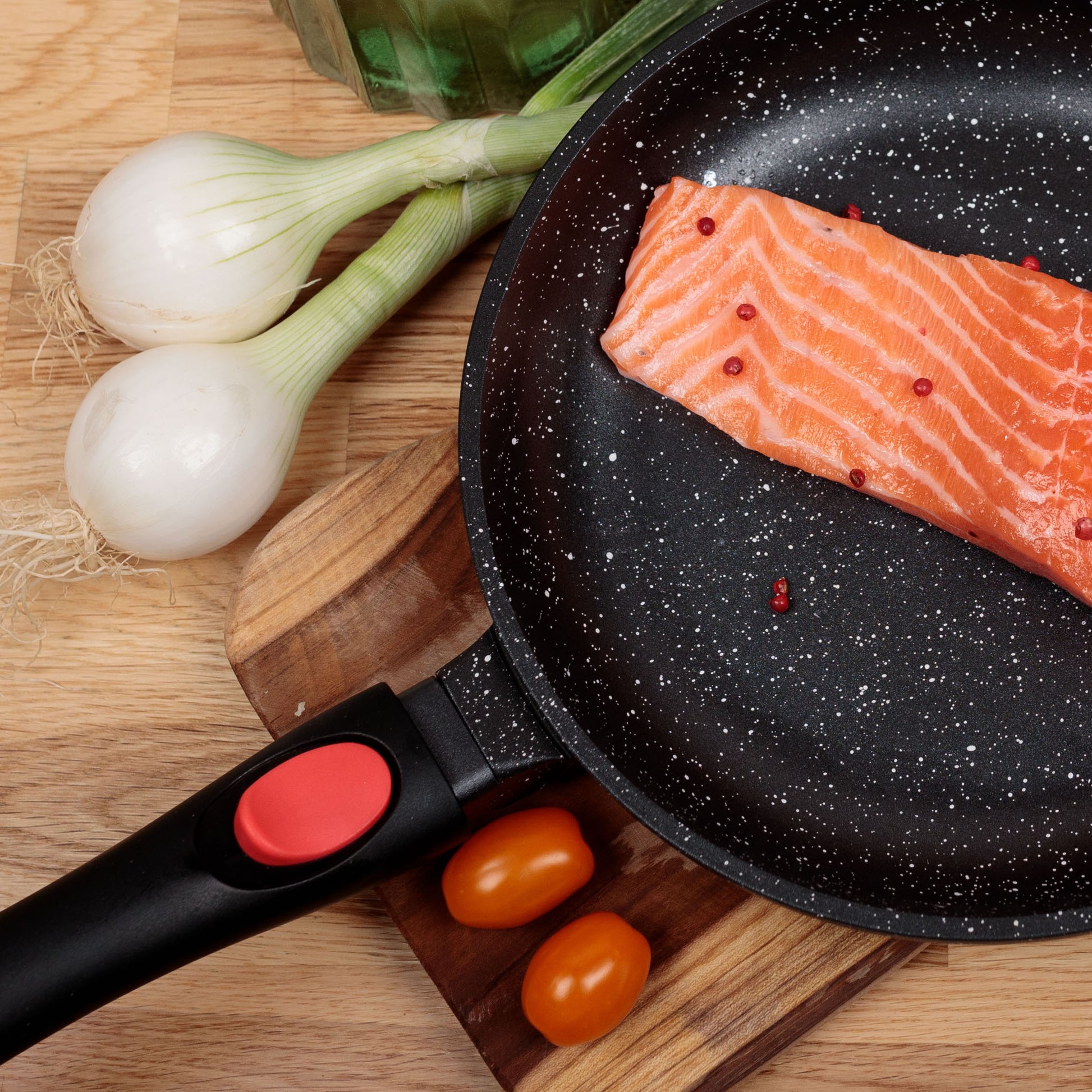 This KAMBERG® cast aluminum pan has a high-performance stone-style non-stick coating which allows you to preserve the authenticity of the taste of food, without adding fat.
