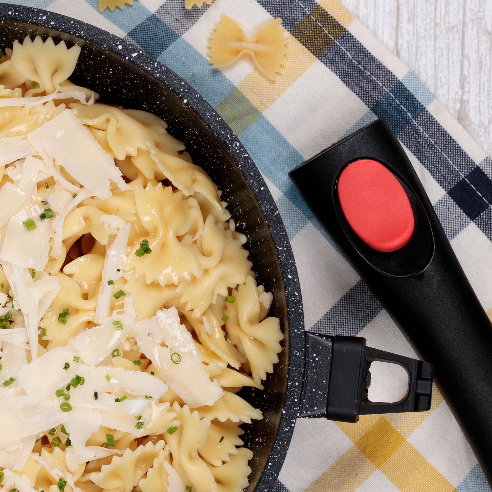 Equipped with a removable handle, storage and cleaning by hand or in the dishwasher are easy.