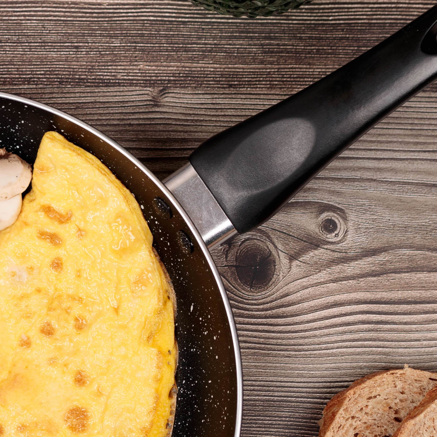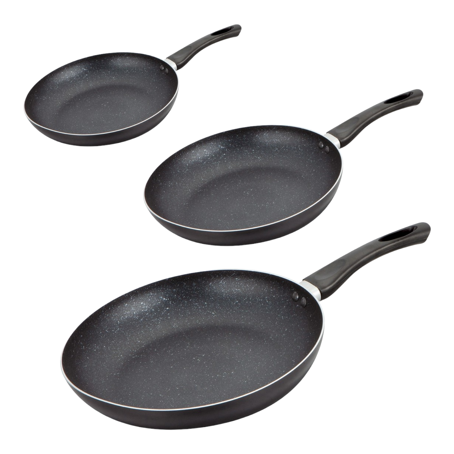 This KAMBERG® series of 3 pressed aluminum pans, light and functional, with marbled interior non-stick coating will allow you to cook your favorite dishes on all types of heat.