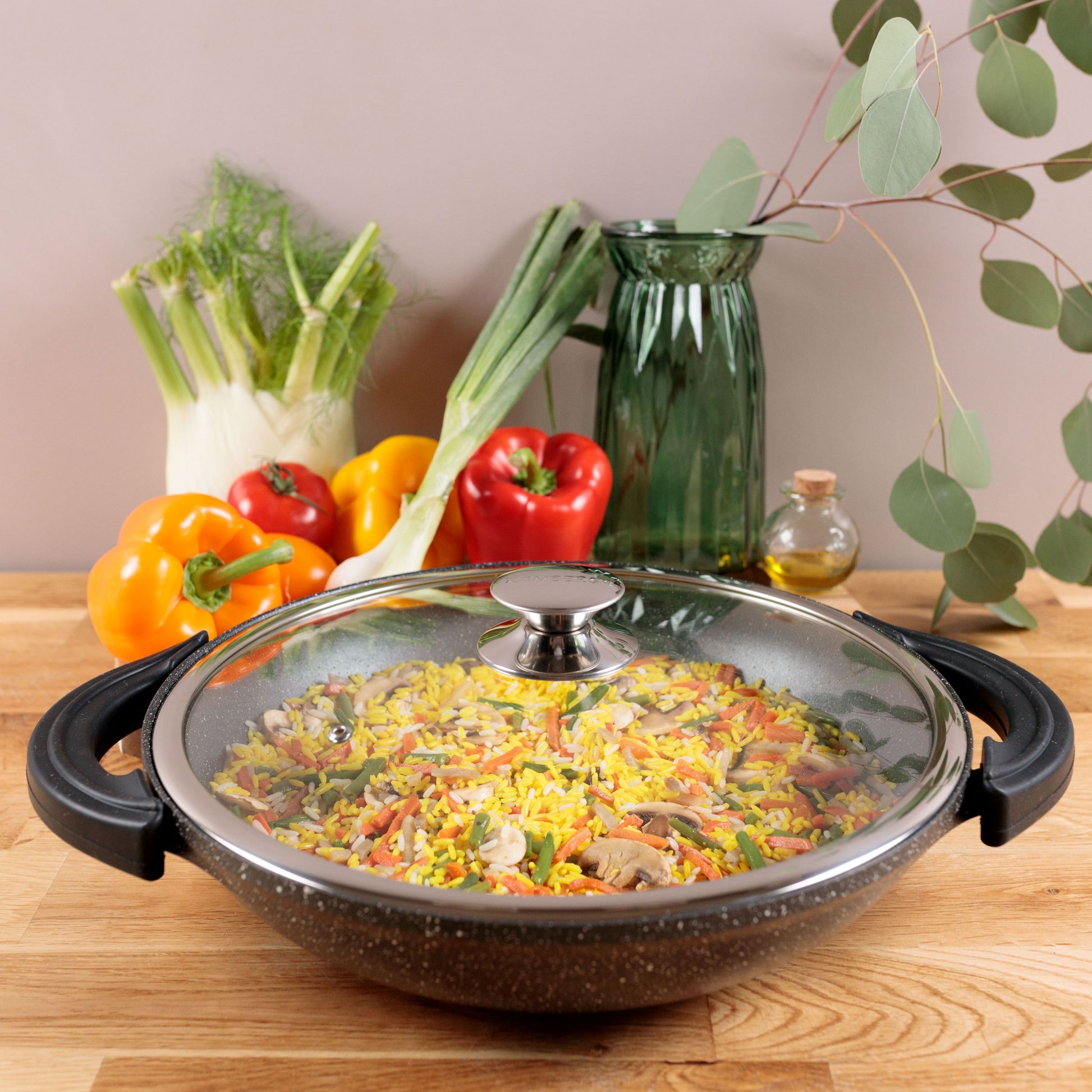 Equipped with a pair of silicone handles, you are protected from the heat when handling this Wok and cleaning is easy, whether by hand or in the dishwasher.