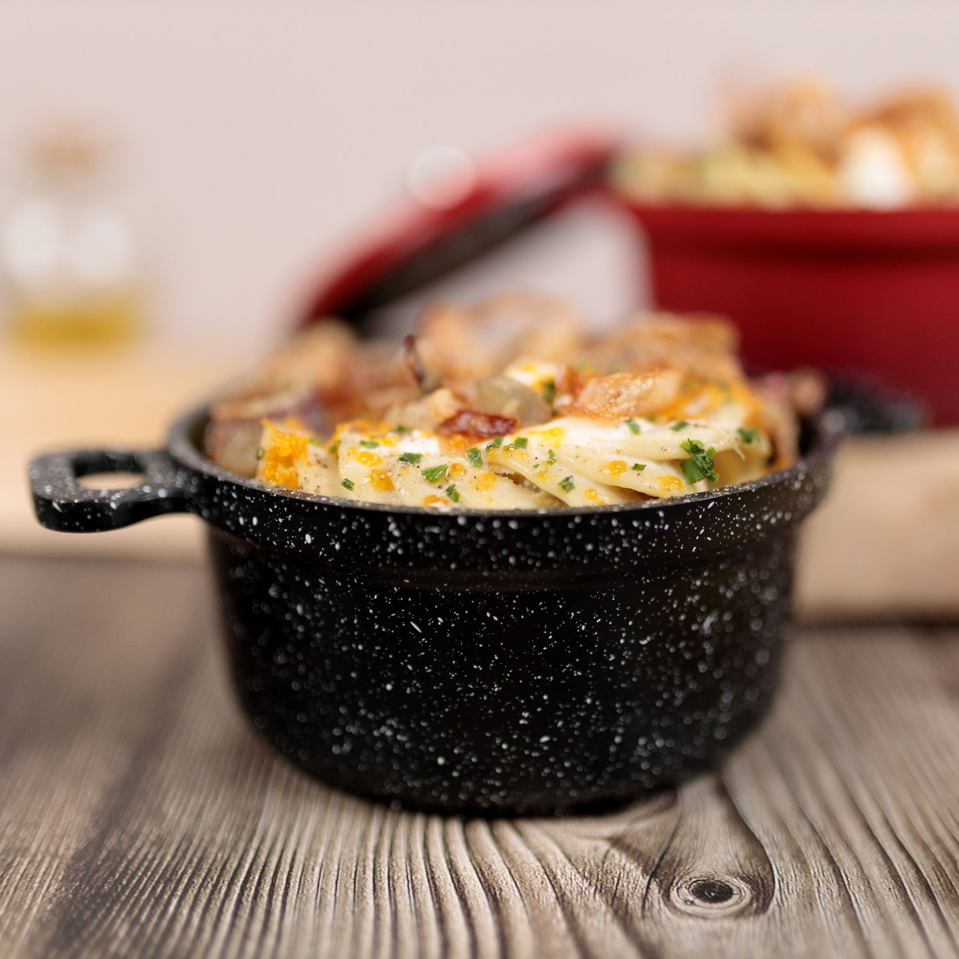 Ce set de 4 Mini Cocottes rondes KAMBERG® en fonte d'aluminium vous permettra de préparer et présenter vos plats mijotés préférés, comme dans les plus grands restaurants.